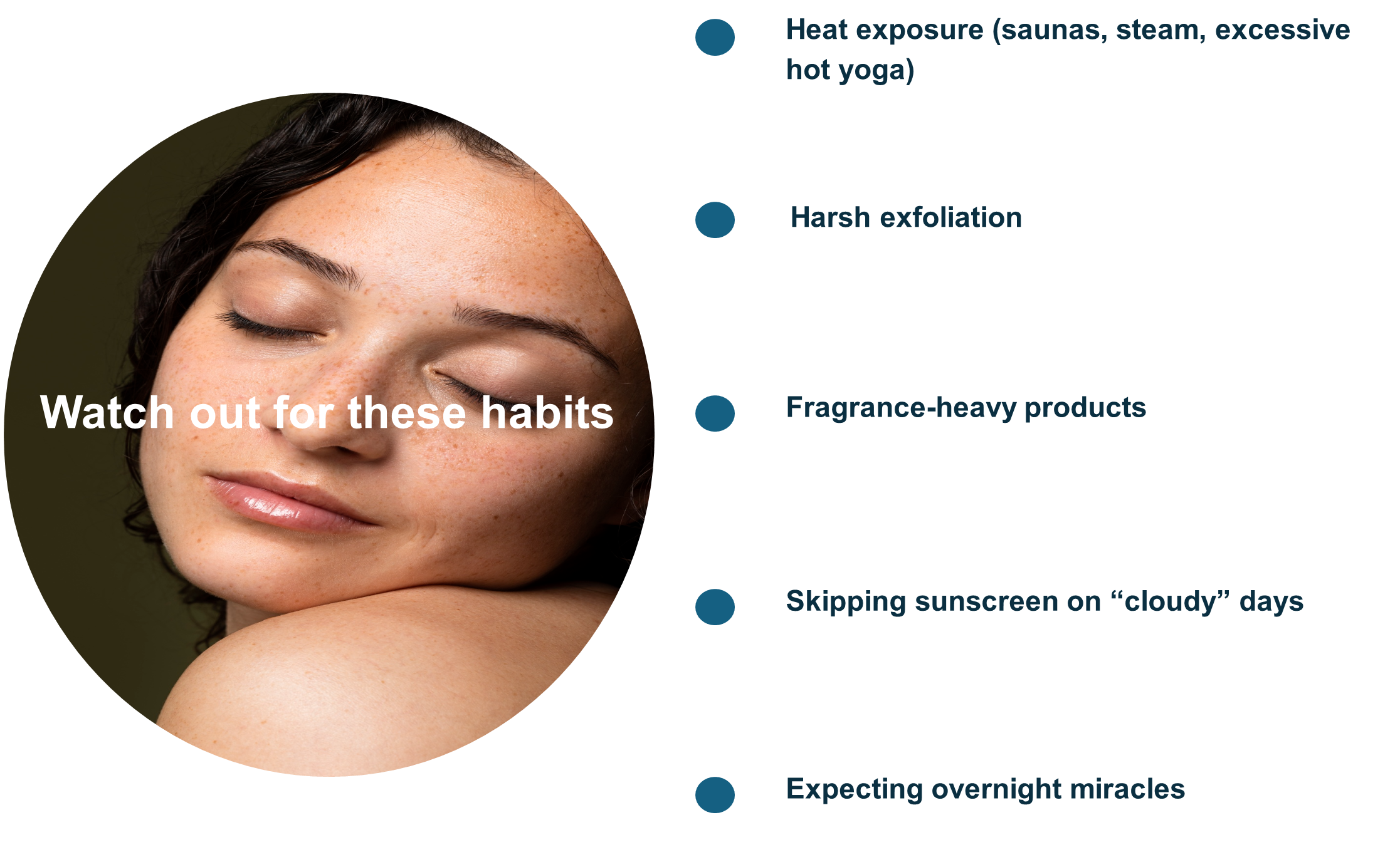거친 스크럽, 공격적인 페이셜 관리, 부적절한 레이저, 또는 과도한 “브라이트닝” 제품 사용은 피부에 염증을 일으킬 수 있습니다. 염증은 멜라닌 세포에게 더 많은 색소를 생성하라고 명령합니다.
