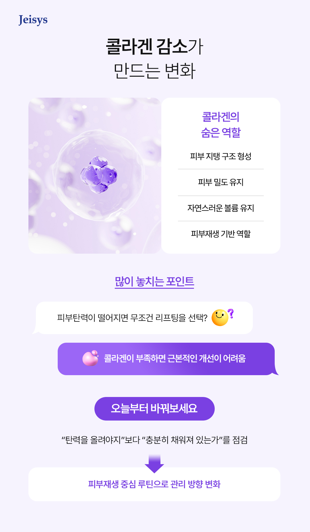 · "탄력을 올려야지"보다 "내 피부 속이 충분히 채워져 있는가"를 먼저 점검해야 합니다.