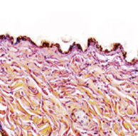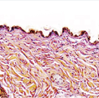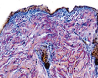 High collagen activity and a dense tissue structure.