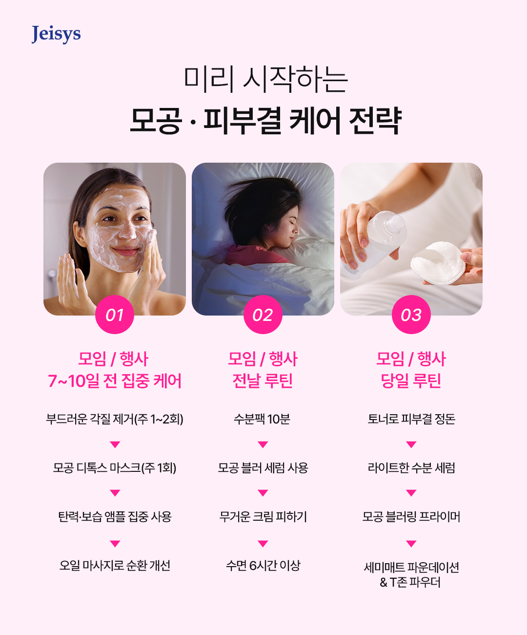 전날 숙면만으로도 피부결·모공 컨디션이 달라져요.