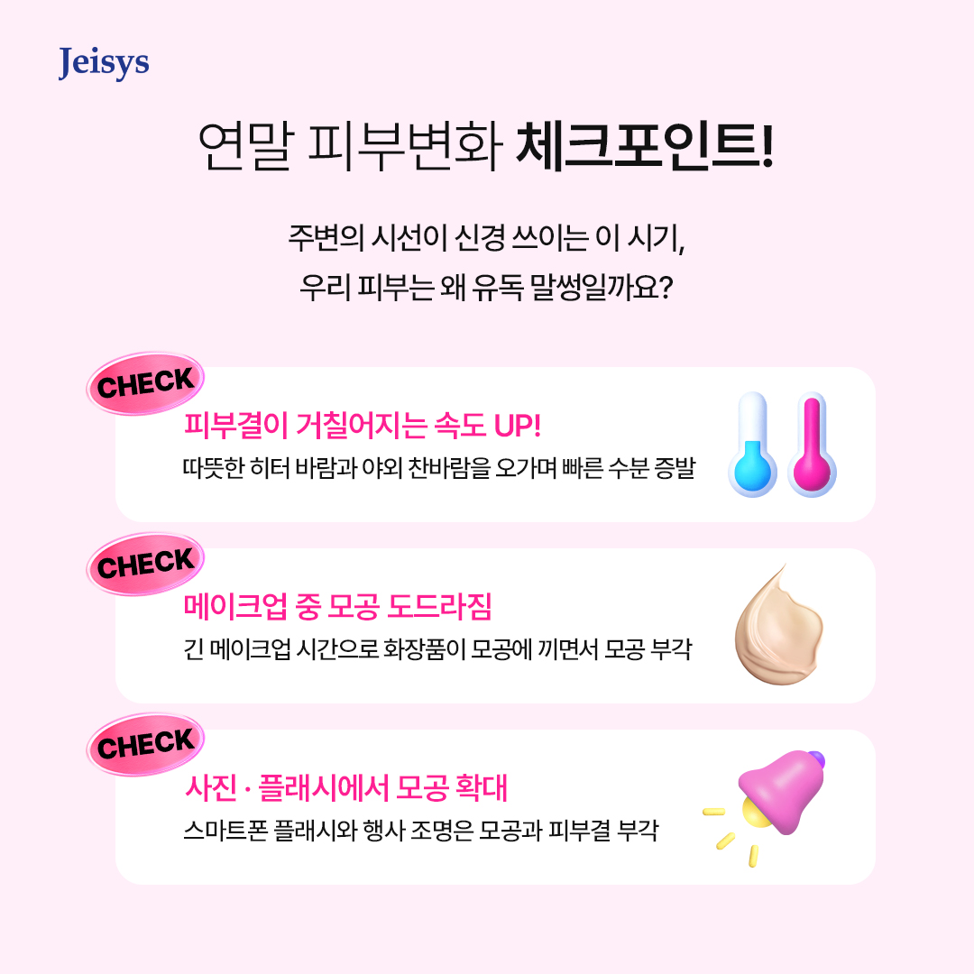 연말 피부는 평소보다 예민하고, 모공과 피부결이 부각되어 보이는 경우가 많은데요. 특히 겨울철 한껏 거칠어진 피부는 메이크업 직후나 각종 조명을 받을 때 눈에 띄게 도드라집니다. 그렇지 않아도 주변의 시선이 신경 쓰이는 이 시기에 우리 피부는 왜 유독 말썽일까요?