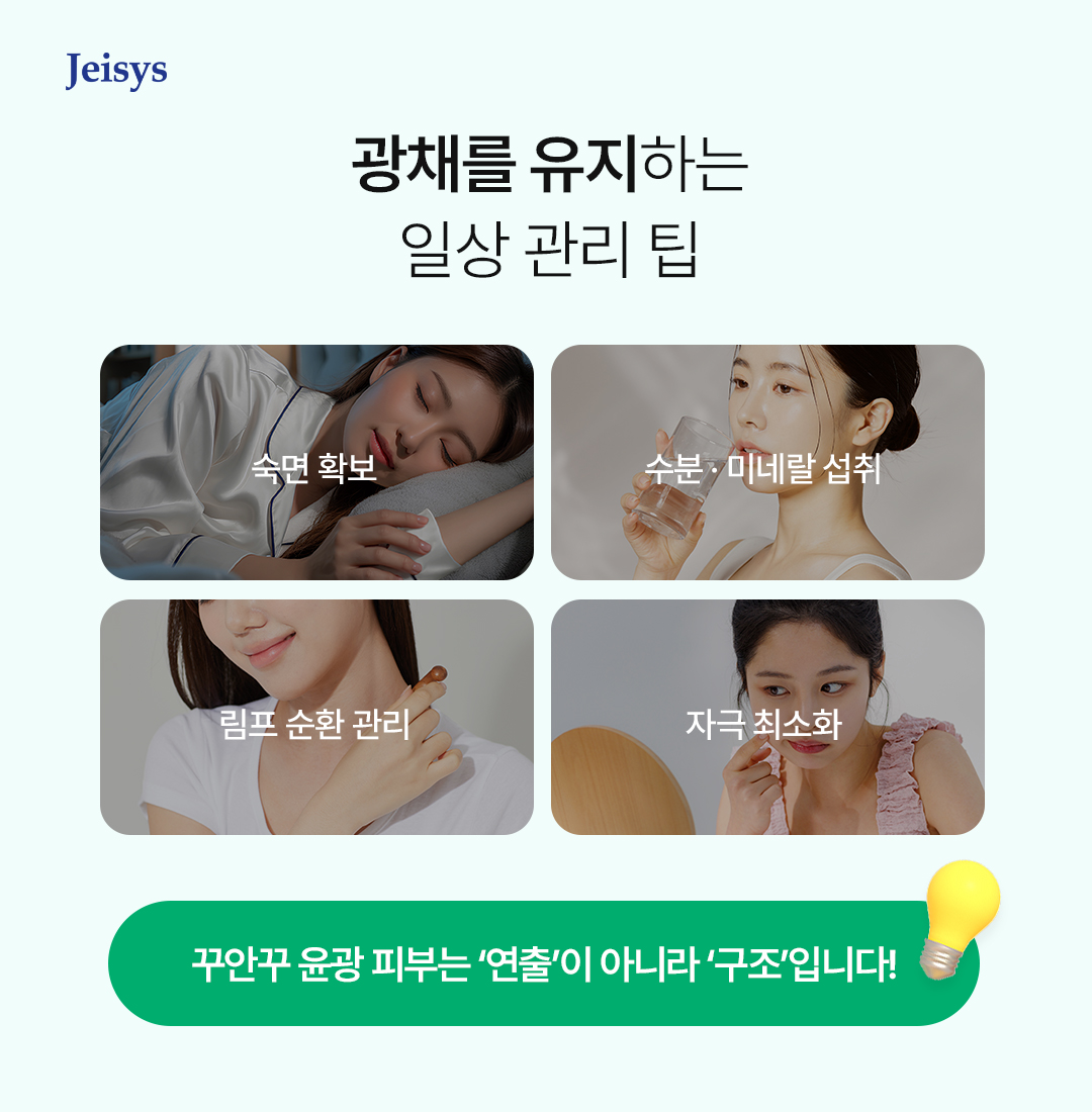 - ① 숙면 확보 – 밤사이 이루어지는 세포 재생이 윤광의 절반을 결정